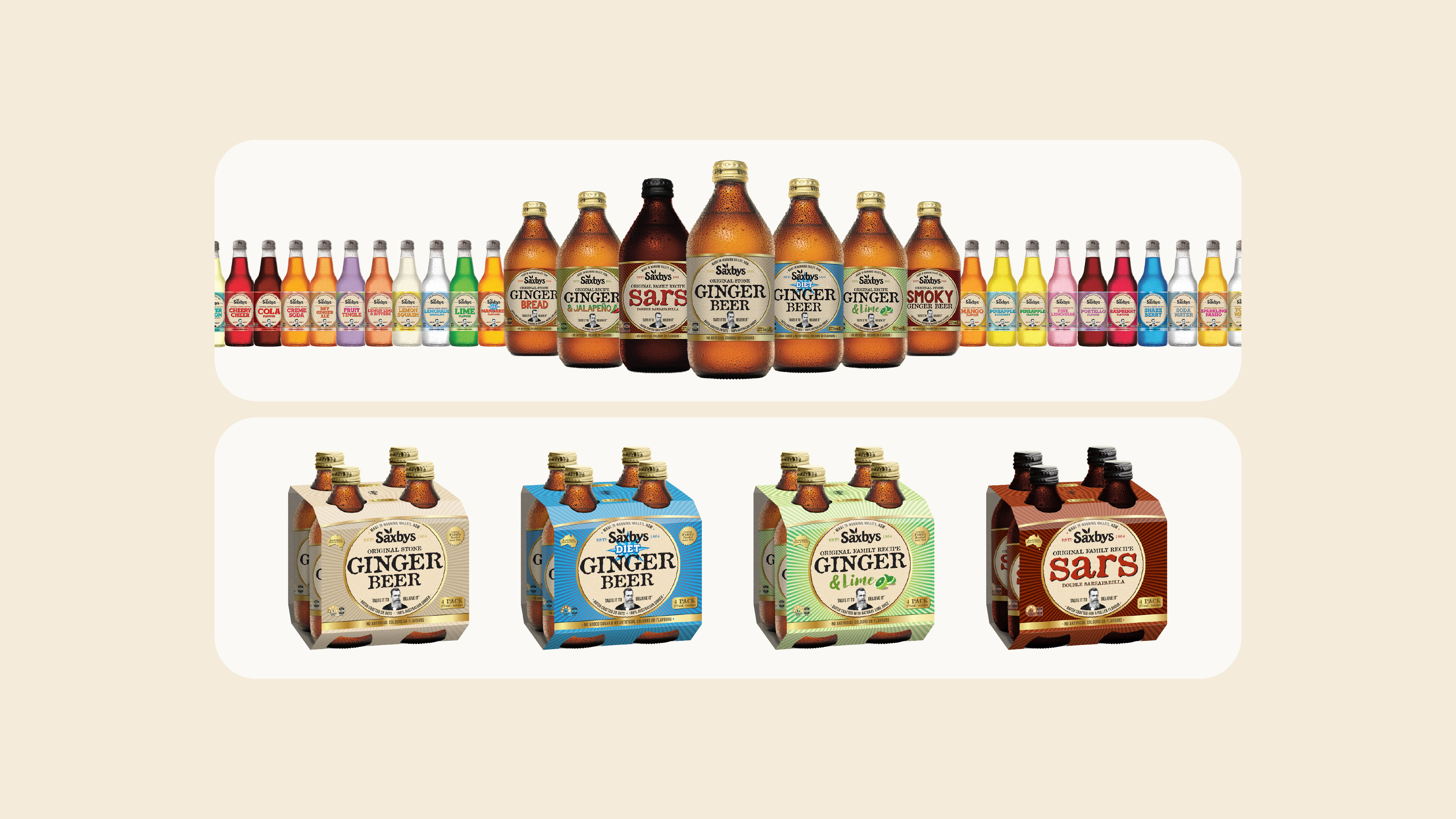 Saxbys is a classic Australian favourite drink brand that has been around since 1864. After five generations, Saxbys is still kicking and brewing thirst-quenching soft drink flavours for all. They are known for their family recipe stone ginger beer.